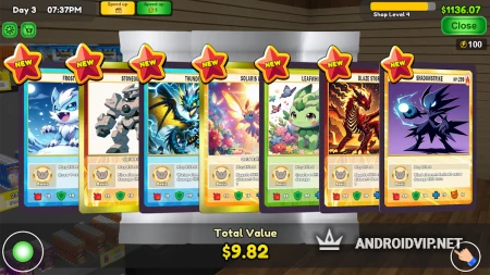 Игрок управляет небольшим магазином, где продаются наборы с коллекционными карточками. В магазине есть склад, несколько полок и касса. В самом начале придется самостоятельно раскладывать товары по полкам и обслуживать покупателей, но чем больше денег получится заработать, тем быстрее вы наймете новых сотрудников.