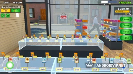 Все управления осуществляется с помощью виртуального джойстика. Вы будете контролировать главного героя, а он при достижении определенного участка магазина начнет выполнять нужные ему действия. Геймплей безумно прост, в нем нет ничего лишнего, а мультяшная стилистика и размеренное звуковое сопровождение не дают соскучиться.