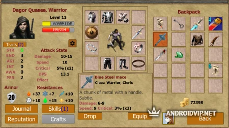 Игроки должны самостоятельно исследовать мир, искать спрятанные тайники и взаимодействовать с разными персонажами. Продуманные диалоги, десятки видов квестов, множество умений и древние артефакты помогут насладиться проектом. В подземельях вас будут ждать опасные ловушки, монстры и прочие враги, желающие вашей смерти. Используйте все доступное вооружение и полученные навыки, чтобы дать им отпор и не погибнуть от вражеского клинка или отравленной стрелы. Бесплатная версия игры включается в себя более 30 детально проработанных локаций с развитием персонажа и олдскульными саундтреками.