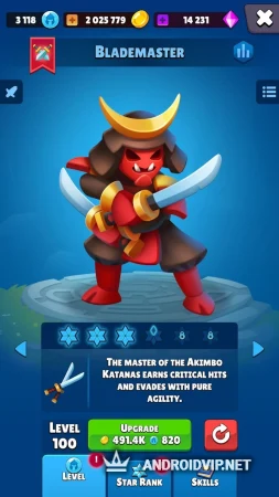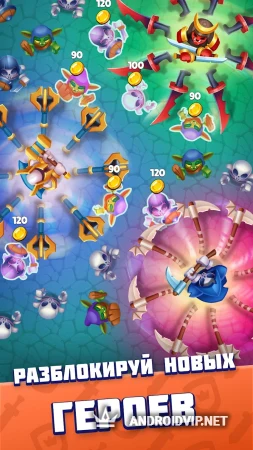 Повышение уровня персонажа открывает доступ к мощным и интересным улучшениям. Можно выбрать другое оружие, прокачать заклинания, увеличить радиус и время их действия, а также многое другое. Со временем игрокам откроются новые легендарные воины и питомцы, которые самостоятельно атакуют врагов и помогают выживать.
