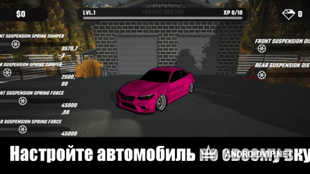 В настройках игры можно выбрать один из четырех способов управления (стрелки, руль, джойстик и гироскоп), поменять качество теней, язык и установить комфортный уровень громкости. К сожалению, на текущий момент в игре нет онлайна и каких-либо соревновательных элементов.