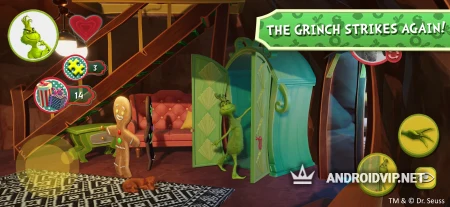 Гринч может бегать, прыгать, скользить под преградами, собирать подарки и бросаться снежками в надоедливых существ. Путешествуйте по мирам, наслаждайтесь детально проработанными локациями и получайте удовольствие от этой веселой рождественской аркады.