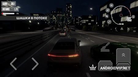 Заезды могут проходить как в режиме офлайн, так и онлайн. В первом случае доступно две трассы: шоссе и дрифт спот. При этом игроки могут выбирать время суток и погодные условия, дабы сделать заезды более реалистичными. В игре очень ценится опасная и агрессивная езда, когда ваш автомобиль проезжает всего в нескольких сантиметров от других транспортных средств. Чем выше скорость автомобиля в момент преодоления преград, тем больше бонусных очков вы сможете заработать. Деньги можно тратить как на новые тачки, так и на покупку шин, подвески, покраски кузова автомобиля, изменения цвета салона, дисков, добавление антихрома и нанесения тонировки.