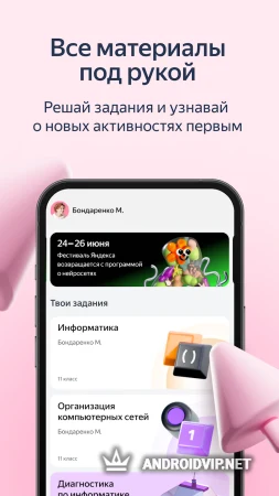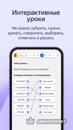 Решать задачи по программированию станет в разы проще и интереснее, благодаря встроенным механикам. Вам не придется ничего учить, программа предлагает придумывать, соединять, выбирать и перетаскивать элементы, с которыми можно взаимодействовать. Кроме того, в приложении можно найти интересные вебинары и фестивали, а также проекты Яндекса. Погружайтесь в мир информационных технологий вместе с Яндекс и получайте доступ к школьным материалам совершенно бесплатно.