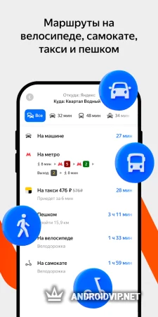 Во всех случаях маршруты получаются наиболее кратчайшими, а если вы двигаетесь пешком, то можете активировать голосовые подсказки, дабы постоянно не смотреть на экран устройства. Если вам нужно отправиться куда-либо на общественном транспорте, то программа отобразит нахождение нужного вам автобуса, трамвая или троллейбуса в режиме реального времени. В случае поездки на автомобиле вам предлагается передвигаться по самому короткому пути с учетом дорожной обстановки и голосовыми предупреждениями о камерах, перестроениях и сложных развязках. Навигатор также проложит удобный маршрут перемещения на велосипедах и самокатах.