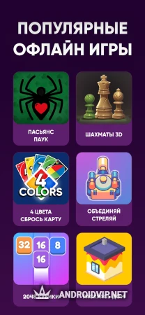Все доступные игры разделены на популярные категории и доступны без интернета. Любители пазлов и головоломок смогут весело проводить время и развивать свои умственные способности в решении увлекательных задач. Поиск предметов, 3 в ряд, пазлы, где нужно собирать картинки, как по номерам, так и просто, игры в формате 2048 и многое другое. От вас потребуется хорошая интуиция и умение принимать верные решения в сложных жизненных ситуациях. Играть можно как по дороге домой, на учебу или в транспорте, где нет стабильного подключения к интернету. Множество спортивных и гоночных симуляторов, экшенов с видом сбоку и сверху, казуальных аркад на точность и реакцию, а также увлекательные стратегии и карточные игры.