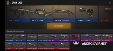 Магазин открыт и доступен для приобретения 5 видов кейсов и набора стикерпаков. Все пользователи без исключения могут получить в свое распоряжение стандартные скины и коллекционные. При желании их можно продать на рынке, правда, не реальным игрокам, а просто в общую копилку. На рынке также находятся редкие скины, которые можно приобрести за золото и выбрать в качестве основного на то или иное оружие.