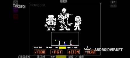 Играть же предлагается за падшего человека, которому предстоит сразиться с именитым трио и одержать победу. Все враги обладают уникальными способностями, приемами и атаками, которые стоит избегать, иначе вы проиграете. Как и во всех аналогичных проектах и любительских модах, управлять предстоит сердечком, используя стрелочки по краям дисплея. Нужно перемещаться по замкнутому пространству и избегать все виды атак, включая магию. Попробуйте все уровни сложности, начиная практикой и заканчивая экстримом, наберите максимум очков и одолейте злобных самозванцев.