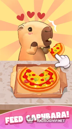 Поваром в данной игре выступает капибара, поэтому геймплей получился умиротворённым и максимально расслабляющим. Первое, что вы попробуйте приготовить будет вкусная пицца, а делать это нужно поэтапно. Используйте скалку для равномерного распределения теста на основе, добавляйте разные соусы, вкусную колбаску и не забывайте про тертый сыр. Закончив с украшением пиццы останется лишь отправить ее в печь, а уже после разрезать на ровные кусочки.