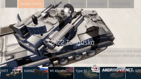Средства противовоздушной обороны позволяют расправляться с ракетами и бомбами, самолетами, беспилотными летательными средствами и прочими военными объектами. В вашем распоряжении окажется целый гараж, где можно приобрести: наземные силы, военно-морские, авиационные, беспилотники и прокачать всё доступное вооружение при помощи накопленных денег.