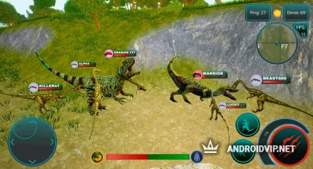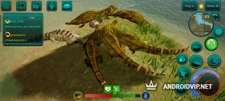 В игре доступно много видов уникальных динозавров, которые отличаются внешним видом и основным набором характеристик. Пользователи могут настраивать цвет и форму глаз, подбирать окрас и прокачивать такие данные, как: здоровье, урон, скорость перемещения и прогресс роста.