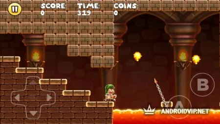 В игре довольно-таки простое и интуитивное управление, осуществляемое за счет виртуального джойстика и определенными клавишами, когда необходимо совершить, то или иное действие. Например, высокий прыжок или выстрелить огненным шаром и так далее. Верхнюю часть экрана отвели под индикаторы монеток, очков и отведенного времени.