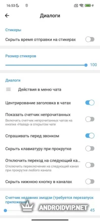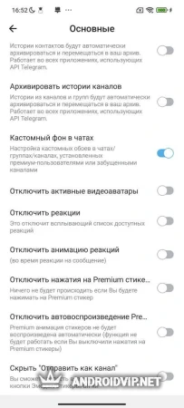 Мессенджер предлагает такие возможности как: скрытие и отображение текущего статуса пользователя, «нечиталку» и «неписалку», загрузка сторис в память устройства, полную приватность и отключение рекламы в каналах. Дополнительно стоит отметить инструменты для редактирования чатов и пересылки медиа, что помогает при активном использовании мессенджера.