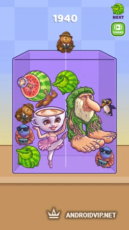 В качестве предметов используются персонажи популярных мемов, например, слон, скрещенный кактусом или верблюд с холодильником. Названия этим странным животным вы можете придумать самостоятельно, а цель игры заключается в наборе максимально возможного количества очков. Все что вам нужно делать – это объединять персонажей мемов, чтобы получать новых героев и тем самым продвигаться дальше и дальше.