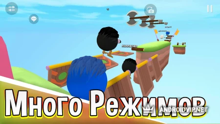 Сражаться предстоит как с ботами, друзьями, так и случайными игроками. Вас ждут огромные открытые карты, наполненные секретами, оружием и неожиданными преградами. Выбирайте один из доступных игровых режимов и отправляйтесь покорять онлайн таблицу мировых лидеров. Попробовать свои силы можно в быстрой игре, в паркуре, где нужно прыгать с одного предмета на другой и стараться не падать в пропасть, в прохождении стеклянного моста и мини-игры под названием «Тише едешь – дальше будешь». Каждый режим по-своему уникален и не даст вам соскучиться.