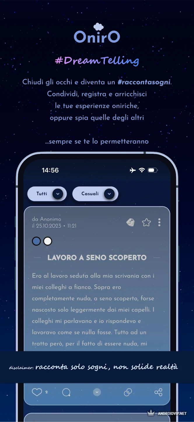 OnirO - одно из самых необычных приложений, которое способно превратить ваши сны и фантазии в цифровое искусство. Программу можно использовать как личный дневник и в дальнейшем обсуждать всё, что в нем есть вместе с другими пользователями. Приложение сочетает в себе творческую платформу, психологический анализ пользователей, социальную сеть и просто медитативный сервис.