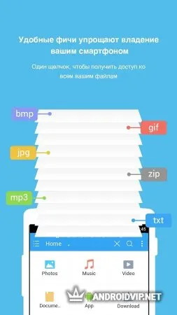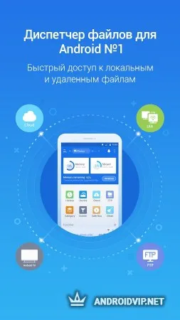 Установив приложение на свой девайс, пользователи могут перемещать, создавать, деинсталировать файлы, создавать резервные копии, распаковывать архивы, управлять установленными приложениями, получать доступ к данным, хранящимся на ПК. Программа отлично оптимизирована, поддерживает все виды файлов, имеет множество встроенных опций и функций, обеспечивает быструю, комфортную работу с медиафайлами и мультимедийной информацией в сетевом и локальном режимах. Программа русифицирована, получила удобный интерфейс, приятный дизайн.