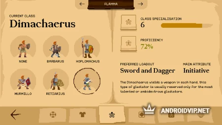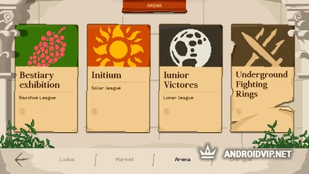 Готовить бойцов предлагается по нескольким направлениям, прокачивая все доступные параметры и увеличивая их шансы на победу. Уделяйте как можно больше времени тренировочному процессу, умело распоряжайтесь ресурсами, покупайте новые виды оружия и устраивайте индивидуальные тесты для всех гладиаторов.