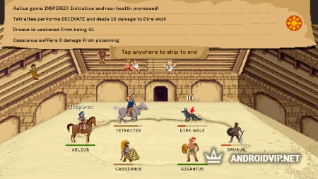 Помимо отличной физической подготовки, бойцы должны быть в хорошем моральном состоянии, иначе поражение настигнет вас очень быстро. На арене нельзя допускать ошибок, а постоянное изменение тактики и выбор разных видов стратегий позволит адаптироваться под более сильных оппонентов. Победы в битвах приносят золото, которое тратится на приобретение снаряжения, изучение новых приемов и найм дополнительных гладиаторов.