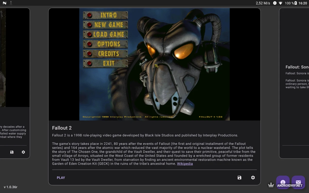 fo2.exe - лаунчер для андроид позволяющий запускать классические версии игр Fallout 1 и Fallout 2.