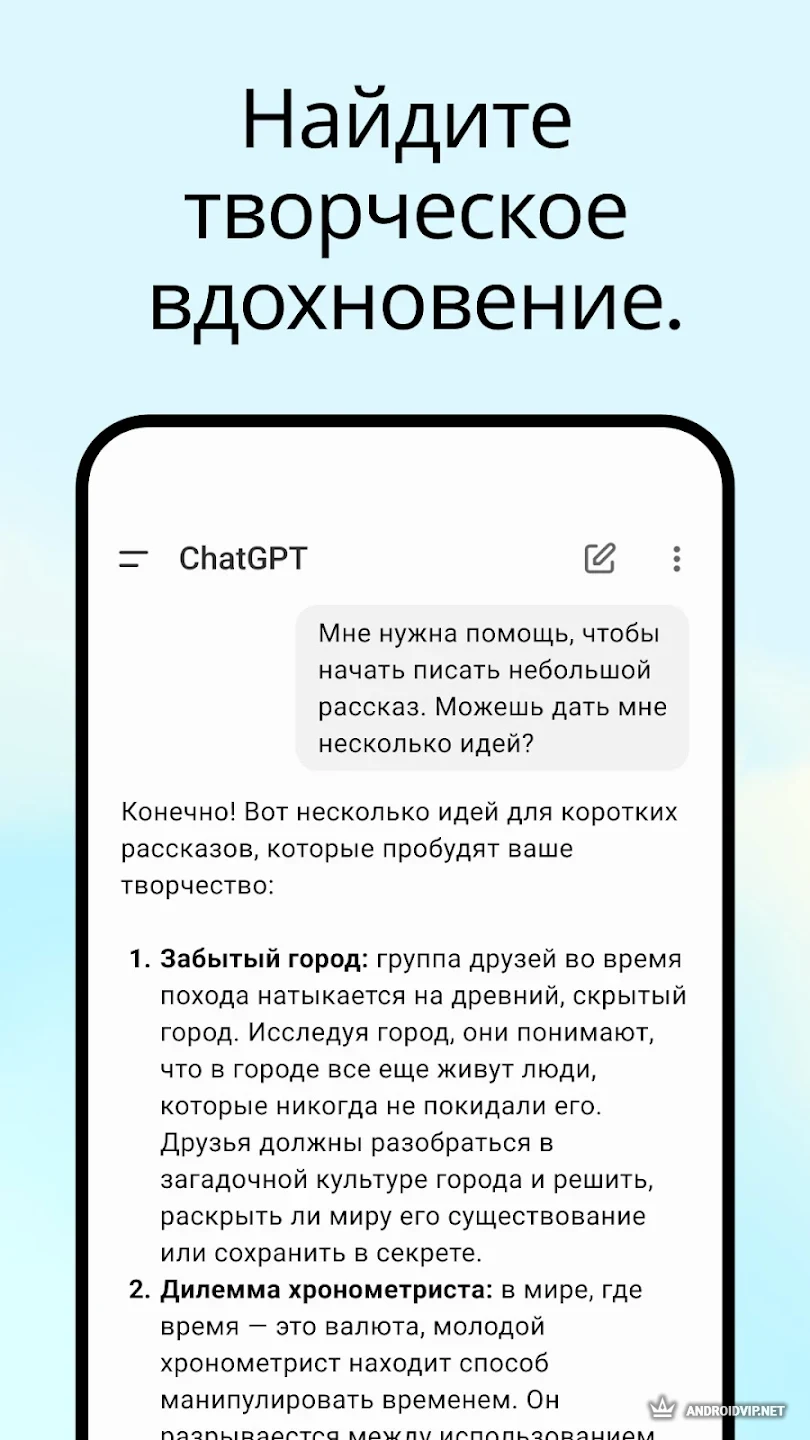 Если вы ранее использовали ChatGPT на компьютере, то вся история запросов синхронизуется между устройствами и вы сможете продолжить просмотр на телефоне. Быстро и удобно, без лишних действий. Данный ИИ можно использовать где угодно: в работе, в учебе, для написания текстов, переводов музыкальных композиций и воплощения собственных идей. Все что вам нужно – это написать или сказать запрос, подождать и получить интересный ответ. При этом в голосовом режиме вы не только сможете создавать запрос с помощью речи, но и получать точно такие же ответы. Удобно, если вы находитесь за рулем или в дороге.