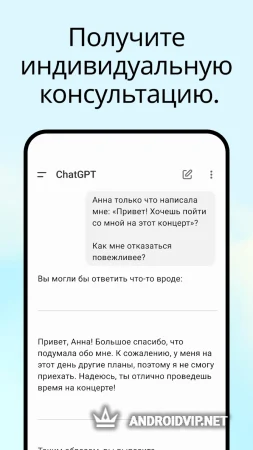 ChatGPT - мобильная версия популярного ИИ, знакомого многим по веб-версии. Для использования всех возможностей данного приложения необходимо авторизоваться с помощью аккаунта OpenAI, после чего вы сможете общаться с ассистентом в удобном интерфейсе. Делать это можно как текстом, так и с помощью голосовых запросов.