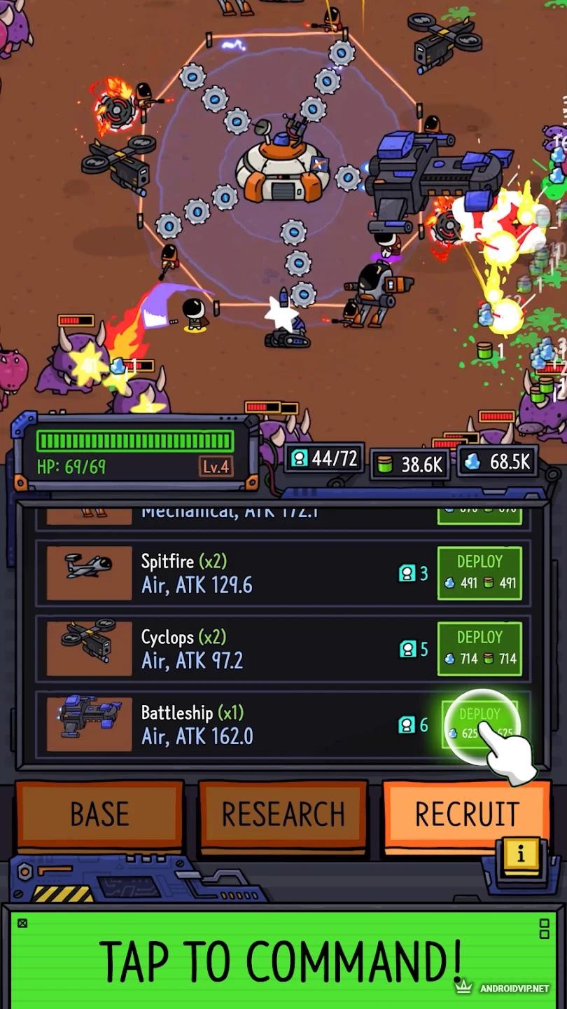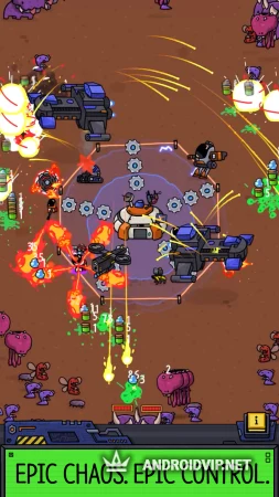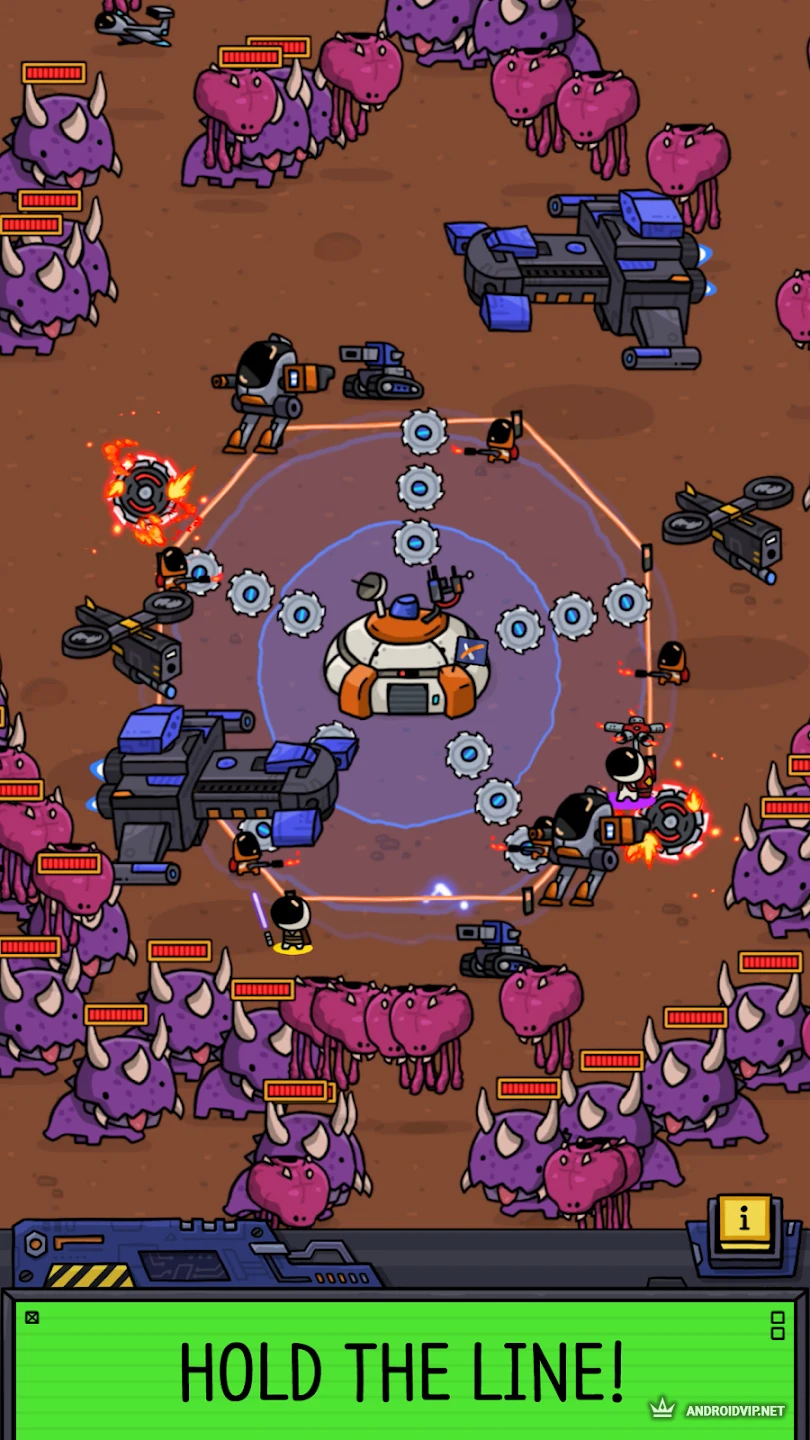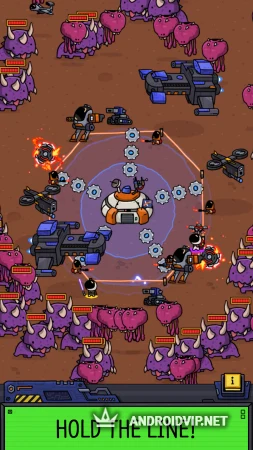В вашем распоряжении окажется автоматическая турель, способная стрелять во врагов при их сближении с кораблем. Ресурсов достаточно для строительства базы и отбивания волн врагов. Вам так же предстоит заниматься научной деятельностью и развивать поселение. Все это осуществляется единовременно, придется отвлекаться на сражения, своевременно прокачивая базу, повышая скорость стрельбы, прочность щитов и количество юнитов.