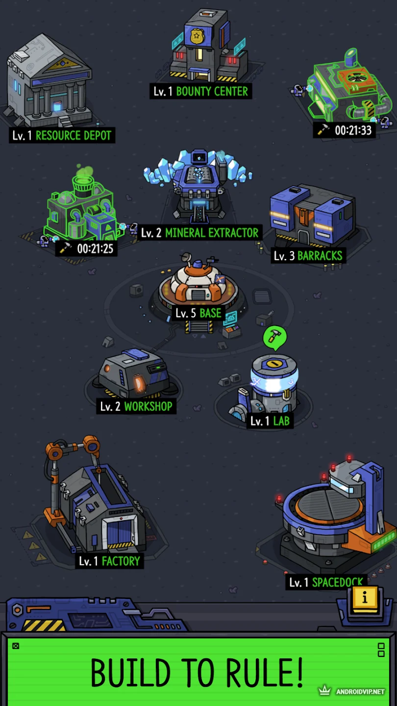 Главная цель игры – продержаться максимально возможное время и построить гигантскую космическую базу на неизвестной планете. Как долго вы сможете продержаться, зависит исключительно от ваших способностей и навыков в играх подобного формата. Большую часть времени вы будете собирать ресурсы, строить здания и улучшать базу, постепенно наращивая боевую мощь в виде юнитов. Развивайтесь, точно просчитывайте каждый последующий шаг и устанавливайте рекорды.