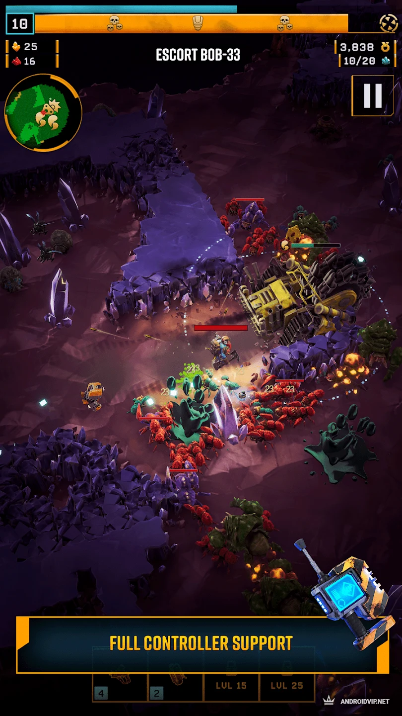 Игра выполнена в жанре автошутера, поэтому вам не придется целиться и беспокоиться о стрельбе, персонаж все делает самостоятельно, нужно лишь контролировать его передвижение по локации, не позволяя жукам сближаться с гномом. Все миссии в игре уникальны, а локации, враги и награды генерируются случайным образом.