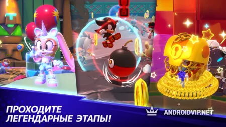 Геймплей игры напоминает нашумевшую и популярную ранее игру Fall Guys: здесь также много прыжков, платформ, ловушек и движущихся поверхностей. При этом игра разбавлена фирменным стилем Соника с его популярными героями, невероятной скоростью и визуальным безумием. Игра выглядит очень ярко и весело, идеально для коротких забегов, когда вам нечем себя занять. Накопленные монеты можно потратить на косметические предметы и новые скины, дабы выделиться из толпы игроков.
