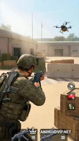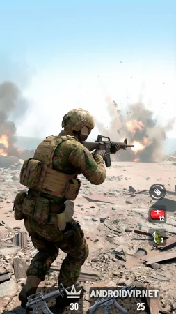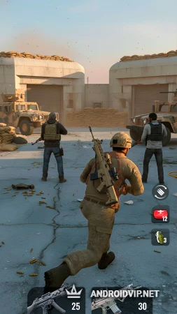 - Стрельба и управление: Стандартное для жанра управление: виртуальный джойстик для движения и зона экрана для прицеливания и стрельбы. Доступны различные режимы стрельбы (автоогонь, ручной выстрел).