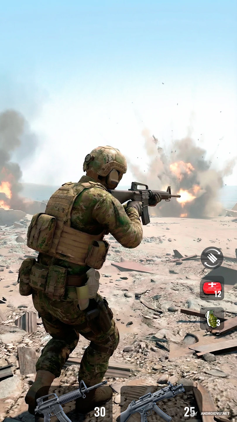 Shoot Out: Симулятор Оружия - это мобильный шутер от первого лица, который бросает игрока в гущу интенсивных военных перестрелок. Вы выступаете в роли элитного бойца, задача которого — выживать на вражеской территории, уничтожая всех противников с помощью разнообразного арсенала.
