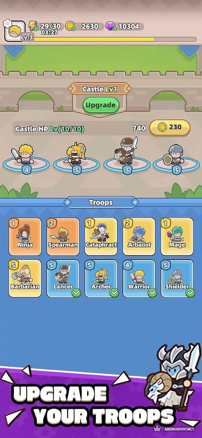 Улучшения: Войск можно усиливать, делая их сильнее.