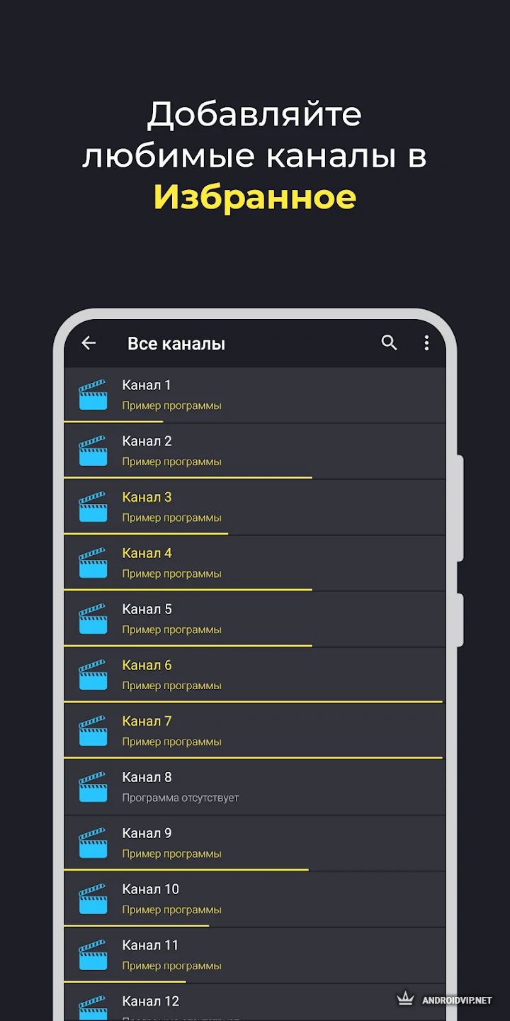 - Удобный просмотр: Сортировка, поиск по тысячам каналов, избранное, история.