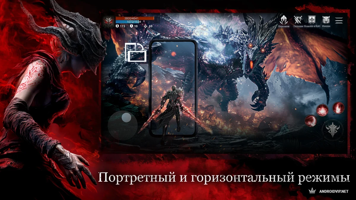 Двойной режим игры: Переключайтесь между удобным портретным режимом для простых действий и кинематографичным горизонтальным режимом для полного погружения в мир и битвы.