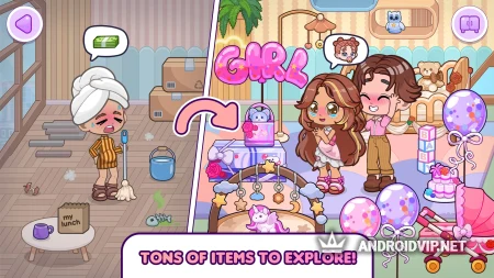 Dopples World - это красочная игра-симулятор в жанре Avatar Life, где главное — ваше воображение. Это песочница, где можно создавать персонажей, придумывать истории, общаться с друзьями и строить свой собственный мир. Игра создана студией TutoTOONS, которая специализируется на безопасных и развивающих играх для детей. Простой интерфейс и яркая графика отлично подойдут для юной аудитории. Если вам нравится создавать персонажей, придумывать сюжеты и экспериментировать с дизайном — здесь вы найдёте для себя простор. Разработчики регулярно выпускают обновления с новыми предметами и локациями.