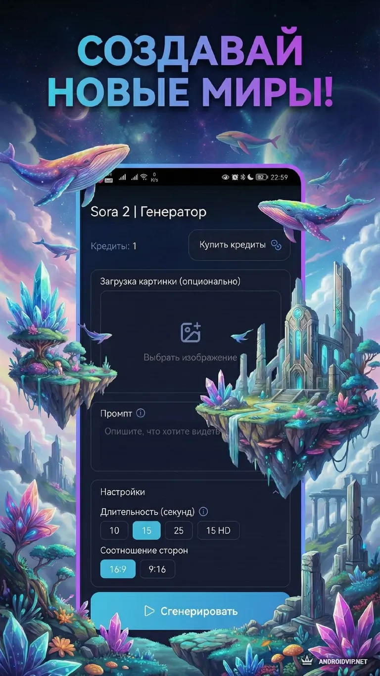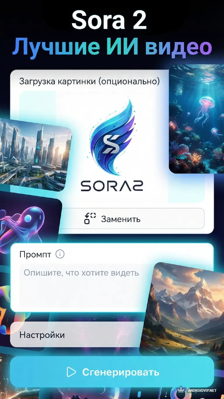 Сора 2 (Sora 2): AI Video — это мощное мобильное приложение, которое использует искусственный интеллект для генерации видео. Оно позволяет превращать текстовые описания или изображения в динамичные видеоролики с синхронизированным звуком прямо на вашем смартфоне.