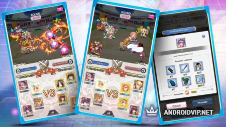 - Стратегия и прокачка: Вы формируете отряд из героинь (более 60 уникальных персонажей), каждая со своими навыками, атаками и ролью (атакующая, защитник, поддержка). Их нужно улучшать, эволюционировать и экипировать для повышения боевой мощи.