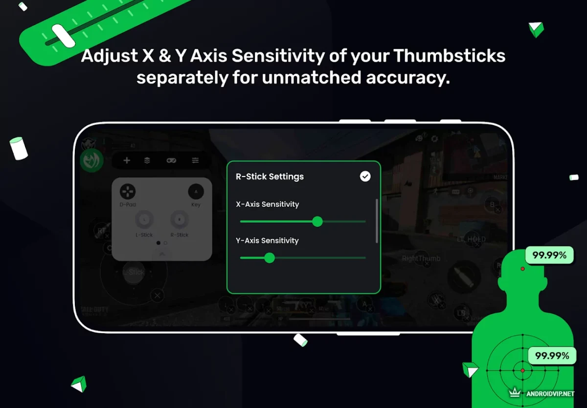 - Сопоставление кнопок: Назначение касаний на экране на кнопки и стики вашего геймпада.