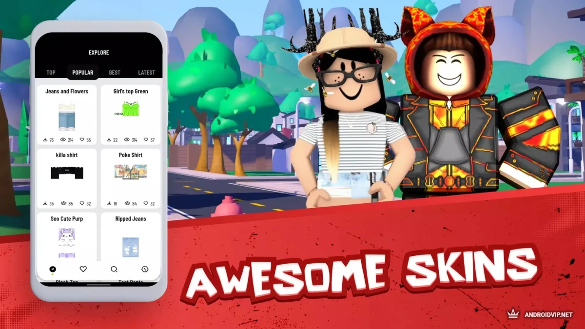 Скины для Роблокса - это удобный инструмент для поиска и загрузки одежды (скинов) для персонажей в игре Roblox. Оно предлагает обширную библиотеку изображений предметов гардероба.