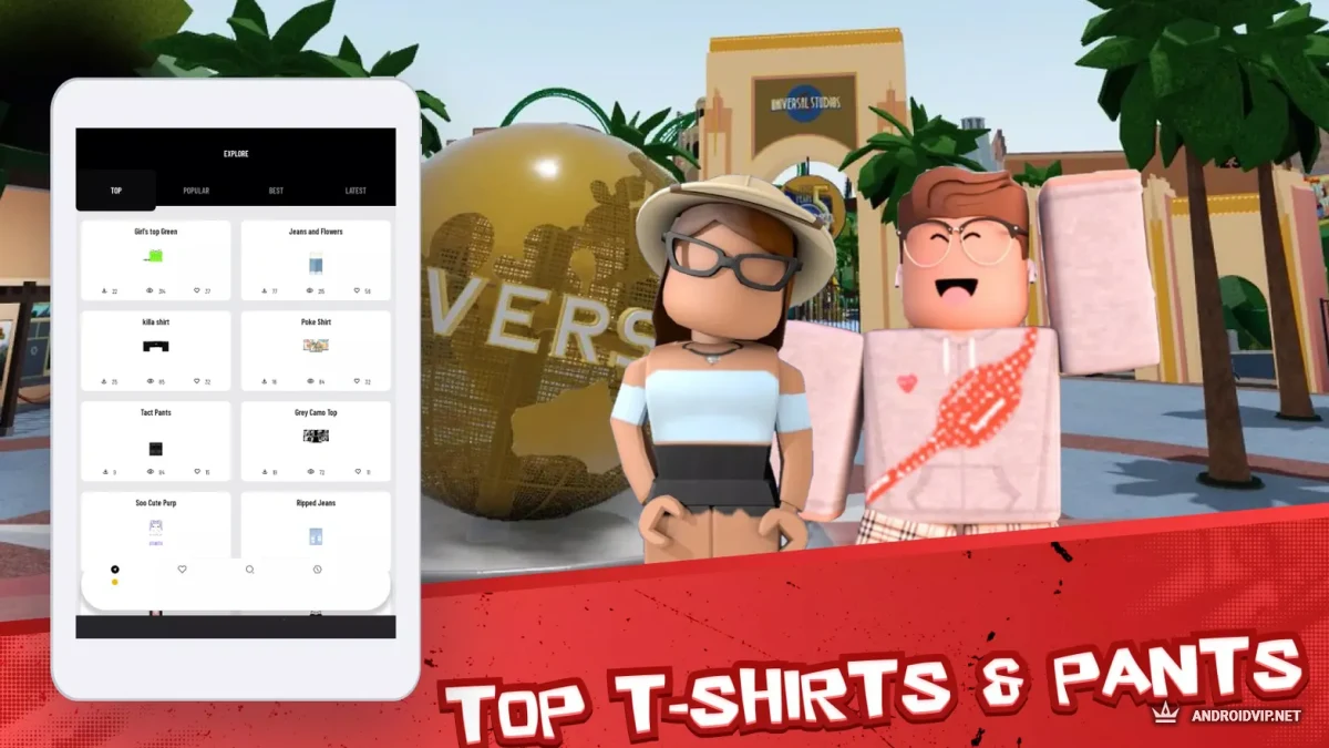 Листайте сотни изображений готовой одежды (рубашек, брюк, платьев, аксессуаров), сгруппированных по категориям. Можно найти понравившийся предмет, узнать его название и сохранить изображение для себя. Приложение НЕ интегрировано с Roblox. Оно не может надеть скин на вашего персонажа автоматически. Вам нужно самостоятельно найти и купить (или создать) этот предмет в самой игре, используя его точное название, которое указано в приложении.