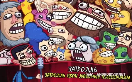 Troll Face Quest TV Shows - это лучшая игра про розыгрыши, в которой вы будете высмеивать современные телесериалы. На сегодняшний день свыше пятидесяти миллионов установили на свои мобильные платформы эту игру, присоединитесь к этим людям и вы! Главная задача – стать истинным Королем в мире троллинга, высмеивая тот или иной телесериал в свое удовольствие. Решите все предложенные головоломки так, чтобы сам Шерлок Холмс вам позавидовал, и, конечно же, устраивайте забавные розыгрыши для своих любимых персонажей.