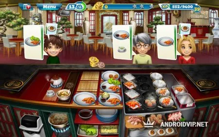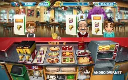 Учитывать нужно и то, что клиенты народ нетерпеливый, поэтому выполнять заказы нужно максимально быстро, чтобы не вызывать недовольство посетителей. Эмоции определяются на отдельной шкале. Основная задача игры – быстрая реакция и правильное распределение времени для приготовления закусок. От скорости, проворности и умений шеф-повара зависит прибыль заведения. На каждом уровне необходимо получить определенное количество монет, а также постараться заработать как можно больше чаевых. Заработанные средства нужно вкладывать в оборудование, апгрейд автоматов для приготовления блюд, обустройство своего заведения.