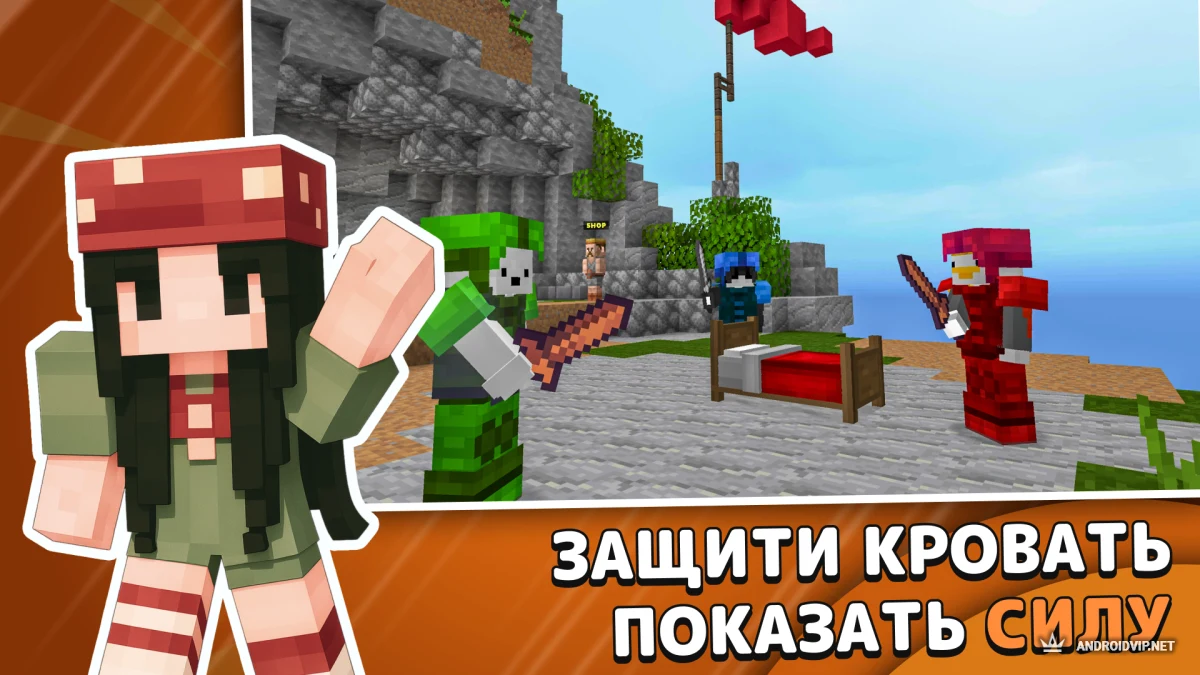 Egg Wars и The Bed — это командная стратегия в чистом виде. Защищайте свою кровать, собирайте ресурсы, улучшайте броню и уничтожайте кровати соперников. Пока кровать цела — у команды есть надежда на возрождение.