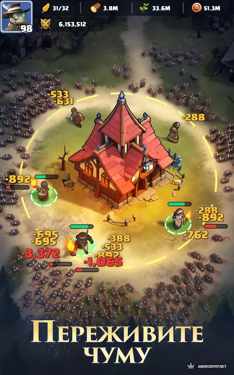 Когда силы накоплены, наступает время наступления. Собирайте элитные отряды из героев разных типов и отвоёвывайте заражённые чумой города. Битвы требуют тактического подхода: нужно перехитрить соперников на поле боя, захватить контроль над ключевыми точками и расширить свои владения.