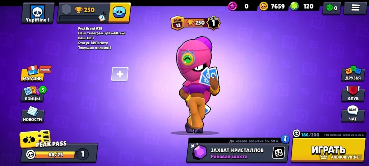 PeakBrawl (ПикБравл) - это качественный приватный сервер Brawl Stars созданный для тех, кто хочет получить максимум от игры без финансовых вложений. Проект базируется на 28-й версии оригинала и предлагает ускоренный прогресс, активный онлайн и доступ ко всем скинам без доната. Если вы устали от долгого гринда в официальной версии — здесь всё качается в разы быстрее.