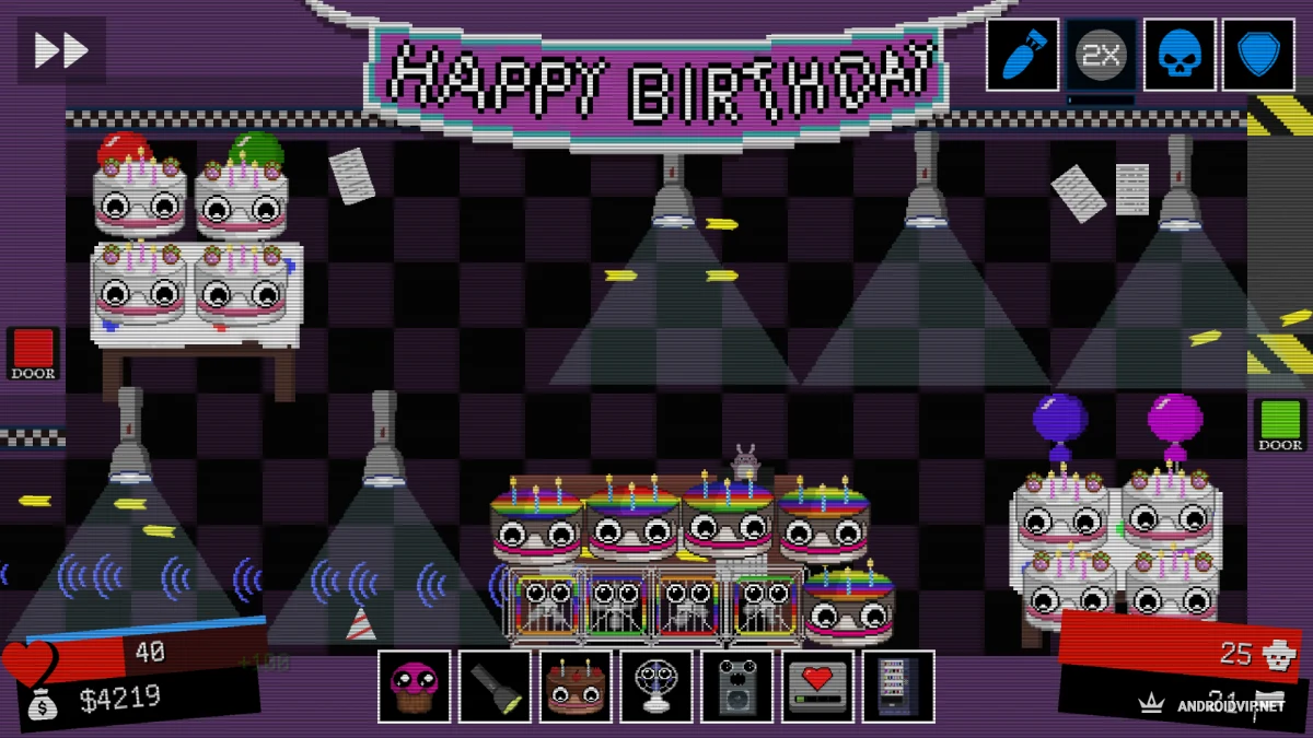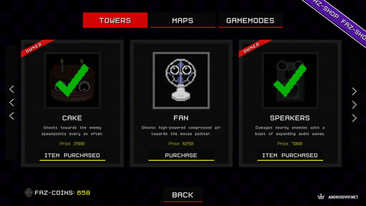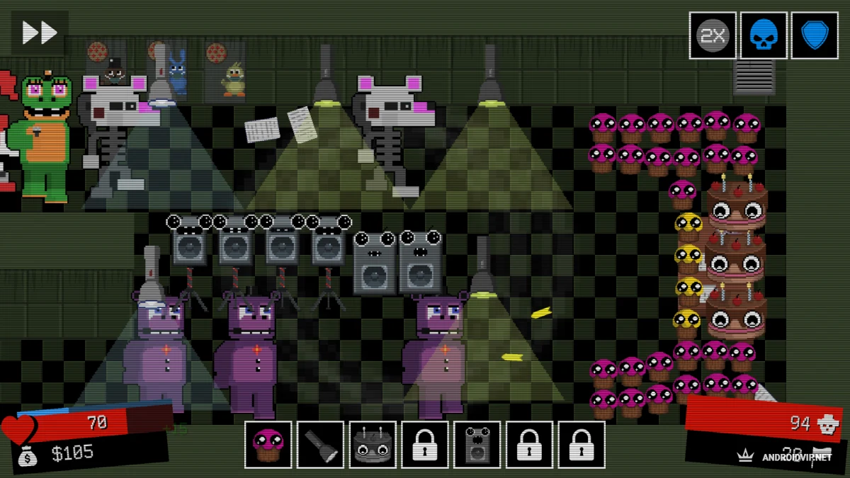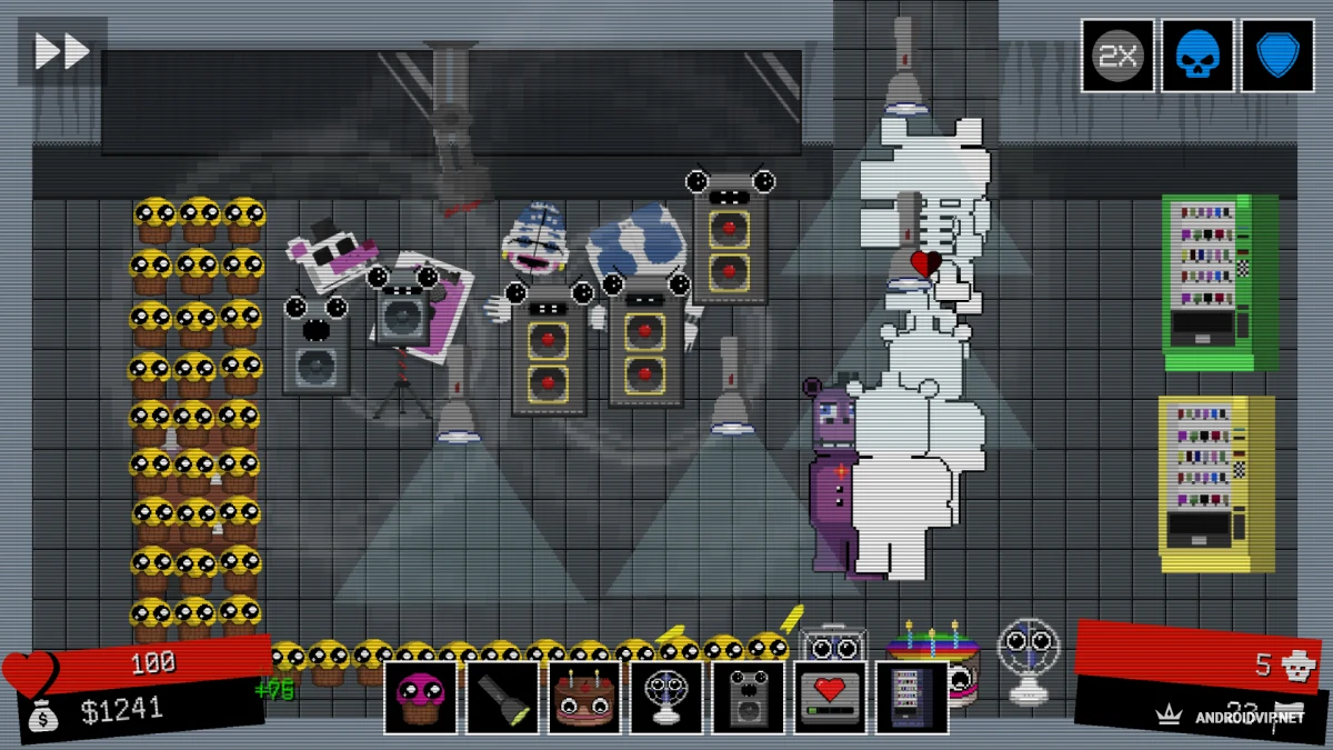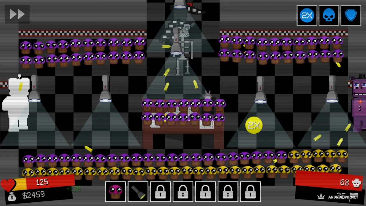FNAF Tower Defense - это неожиданный, но крутой микс: вселенная Five Nights at Freddy's встречается с жанром tower defense. Вместо того чтобы сидеть в офисе и бояться каждого шороха, вы сами строите оборону и отбиваетесь от волн врагов. Прокачиваете башни, открываете новых персонажей, сражаетесь на разных картах и лезете в топ таблицы лидеров.