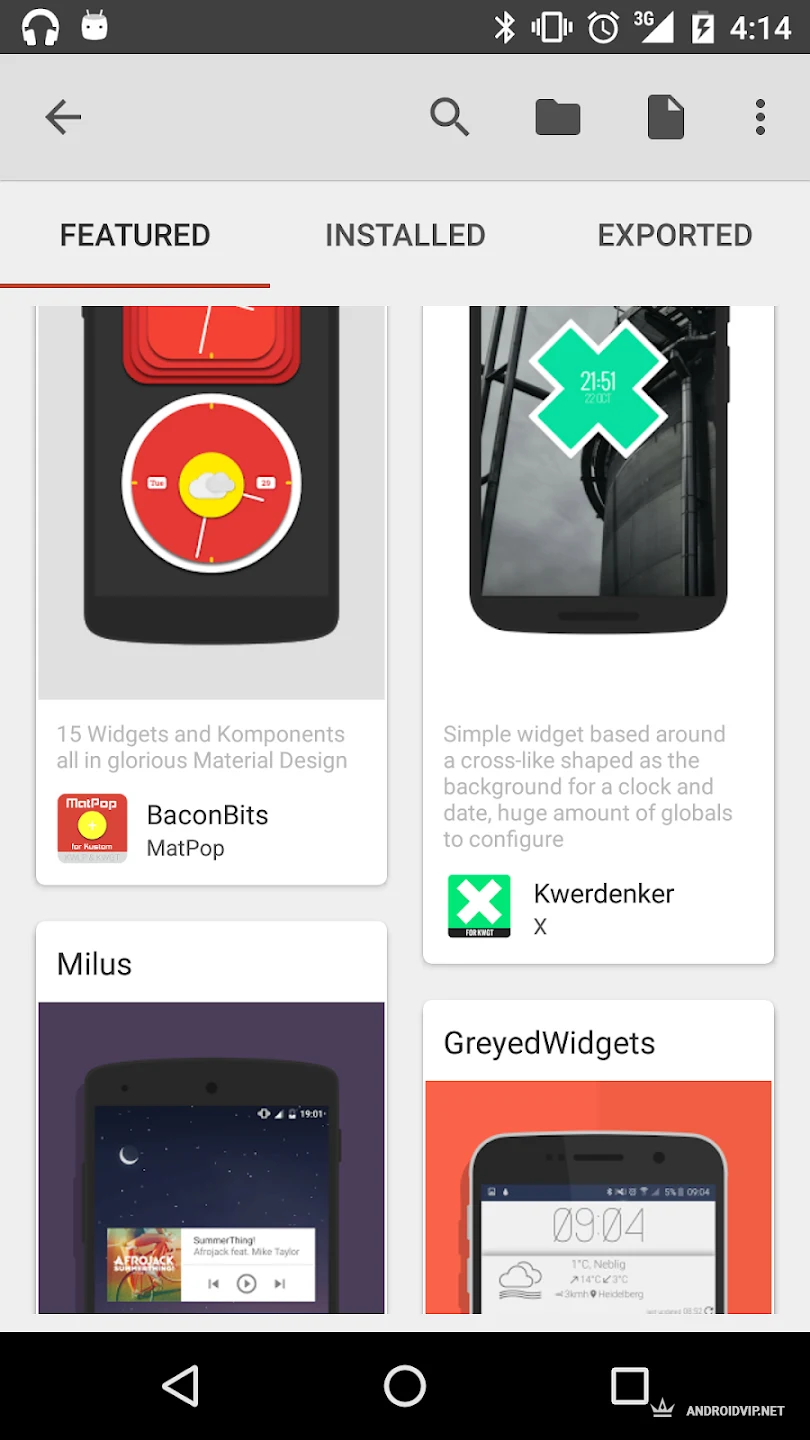 - Интерактивные виджеты с действиями по нажатию.