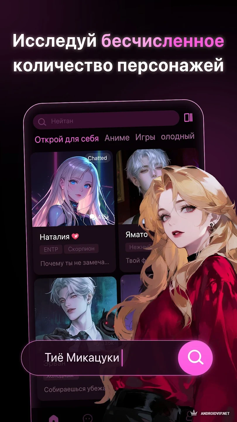 В приложении огромный выбор готовых персонажей — знаменитости, герои фильмов и игр, исторические личности, и у каждого уникальный голос и манера общения. Можно создавать своих собственных персонажей, любых — от эльфа-мага до киборга-убийцы, и либо оставлять их в тайне, либо делиться с сообществом. Всё это абсолютно бесплатно, без платных подписок и без ограничений на количество сообщений — болтай сколько влезет. ИИ здесь действительно умный: отвечает естественно, не надоедает, подстраивается под контекст, не то что скучные болванки из старых чат-ботов. Ещё есть живое сообщество, где можно общаться с персонажами, которых создали другие пользователи, а библиотека постоянно пополняется, так что новые лица не заканчиваются.