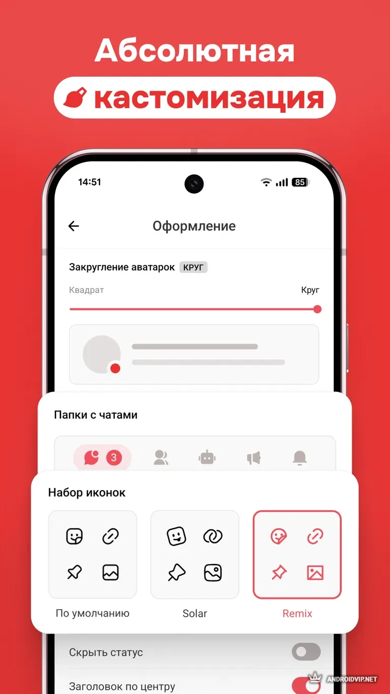 - Полная кастомизация внешнего вида (Material 3, Monet).